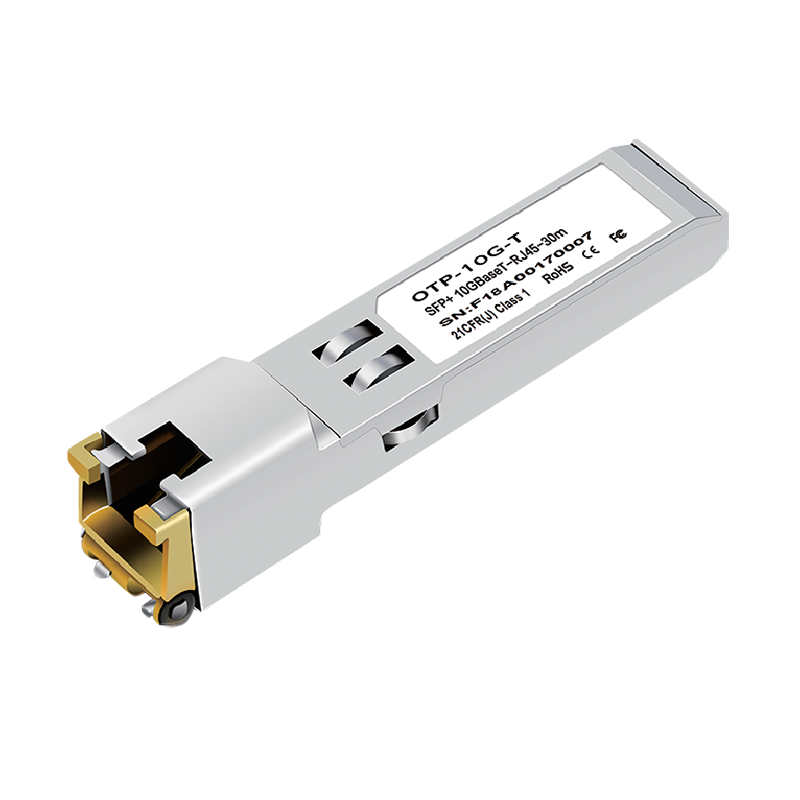 Optoray 구리 SFP 송수신기는 Cat5e, Cat6a 또는 Cat7 연선 케이블을 사용하여 100M/1G/2.5G/5G/10Gbps 이더넷의 물리적 계층 기능 역할을 합니다.  작동 속도를 고정하거나 100M/1G/2.5G/5G/10Gbps 링크 파트너와의 자동 협상을 지원하도록 프로그래밍할 수 있습니다. Copper SFP 트랜시버는 IEEE 802.3 표준을 완벽하게 준수하도록 설계되었으며 절연된 변압기를 통해 네트워크에 연결됩니다. 새로운 NBASE-T 장치(예: Wi-Fi AP)를 기존 10G 스위치에 연결하여 새로운 이더넷 표준과 기존 이더넷 표준 간의 원활한 연결을 제공합니다.